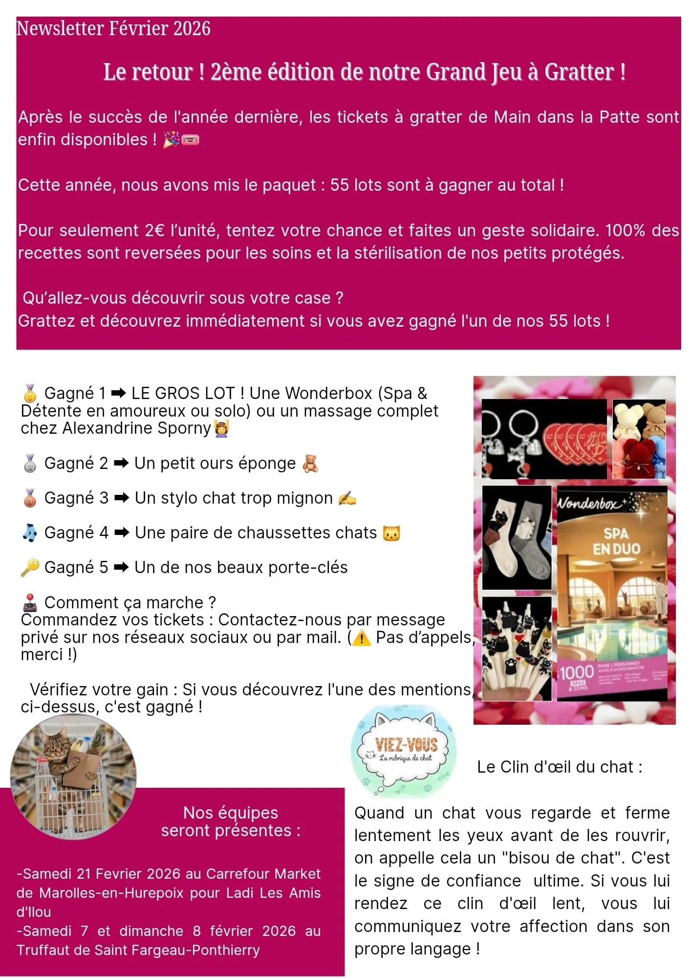 Nos tickets à gratter sont enfin disponibles ! 🎟✨ Pour seulement 2€ l’unité, tentez votre chance et soutenez nos sauvetages 🐱💙 Chaque ticket acheté est un don essentiel qui nous permet d’agir encore plus pour nos petits protégés !